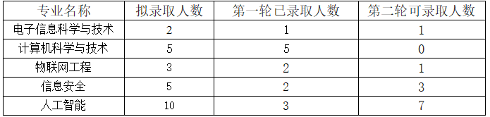 按照学校教务处《关于做好2024-2025学年度第1学期普通全日制学生转专业工作的通知》工作要求及《信息工程学院2024-2025-1学期转专业工作实施方案》,结合《信息工程学院2024-2025-1学期转专业学生考核结果及拟录取情况公示》,现公布我院还可接收转入学生的专业及名额,请各学院愿意申请转入以下专业的学生按学校相关要求可继续申请转入。转专业的条件仍按照《信息工程学院2024-2025-1学期转专业工作实施方案》实施。