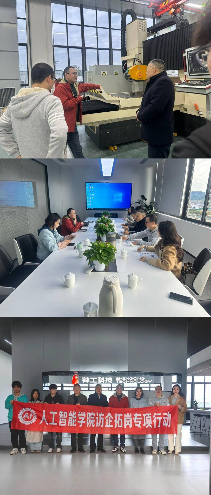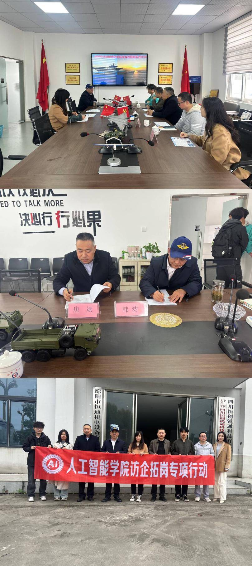 为深入贯彻落实党中央、国务院关于高校毕业生就业工作的决策部署,深化产教融合、校企合作,拓宽学生实习实训与就业渠道,11月11日,绵阳师范学院人工智能学院组织师生代表,由学院党委书记唐斌,党委副书记、纪委书记郑微波带队,学办主任衡洁,专业教师周建平及三位学生代表,先后走访了三家本地优质企业,深入开展“访企拓岗促就业”专项活动。
