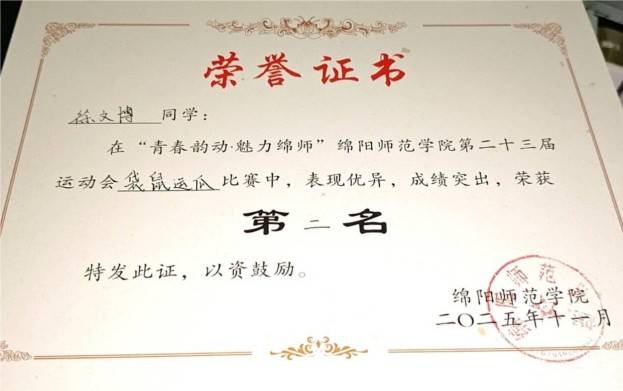 11月13日至14日,绵阳师范学院第23届“青春韵动,魅力绵师”运动会圆满落幕。人工智能学院师生以昂扬的姿态和拼搏的精神,在竞技赛场与趣味项目中屡获突破,共斩获学生组3项团体荣誉、2项个人荣誉、教职工趣味运动会二等奖与体育道德风尚奖,以优异成绩诠释了“青春无畏,逐梦扬威”的体育精神。