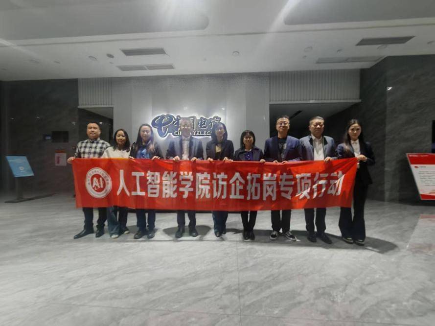 王杨副校长一行实地参观了中国电信5G智慧展厅、大数据中心等,对企业人工智能创新应用成果给予肯定,并详细介绍了学校办学特色及人工智能学院学科建设、人才培养情况,指出此次走访旨在精准对接企业需求,打通人才培养与就业通道,实现校企资源互补。中国电信负责人介绍了企业在5G、云计算、人工智能等领域的技术优势与实践成果,强调企业对人工智能领域高素质人才的迫切需求,期待与学校深化合作。