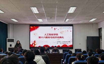 为筑牢青年学子思想根基、锤炼新时代青年骨干,11月21日,我院在弘文楼203举办第十八期青马班开班典礼。人工智能学院党委书记唐斌,党委副书记、纪委书记郑微波,学办主任、分团委书记衡洁出席会议,第17期青马班学员代表、第18期青马班全体学员参加会议。