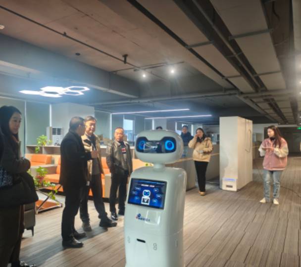 在绵阳荣耀科技有限公司,学院教师近距离观摩AI技术生产应用案例。企业负责人重点介绍了公司在人工智能算法优化、智能硬件研发、物联网技术应用等领域的核心优势与创新成果,并结合行业发展趋势明确提出,当前企业急需具备实践操作能力、跨领域协同能力及创新思维的复合型人工智能人才,希望与学院在人才定制培养、实习基地建设等方面建立长效合作机制。